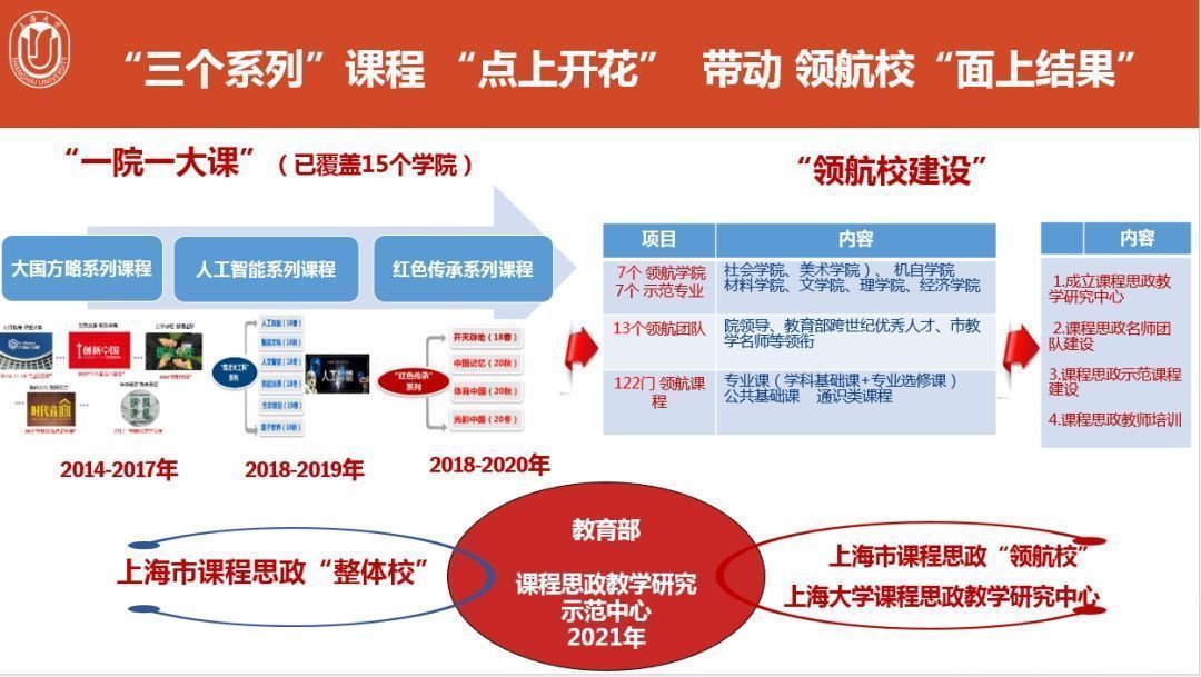 中心围绕课程思想政治建设的前瞻性问题,明确主体责任,形成以学校为基础、服务上海、辐射全国的课程思想政治教育教学体系。全面推进课程思政建设的理论研究和实践指导 走向大计划。